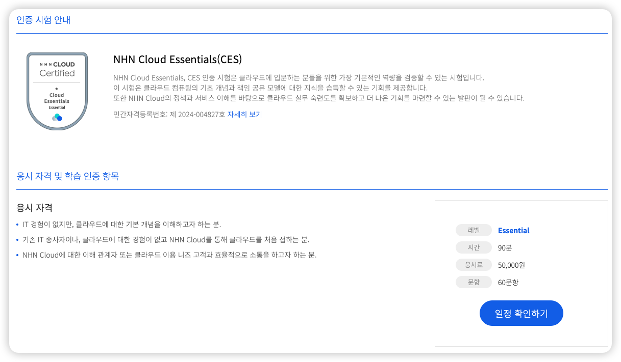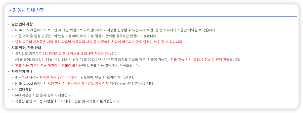 자격증은 NHN Cloud 회원가입 후 신청 및 응시할 수 있으며,