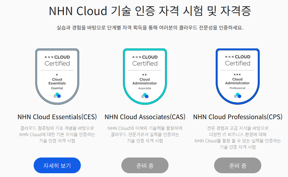 그 중 NHN Cloud Certified Cloud Essentials는 기초 단계 레벨의 자격증입니다.